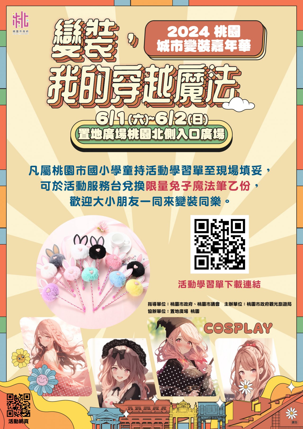 主旨: 檢送「2024 桃園城市變裝嘉年華」學習單 1 份,請惠予協助公告轉知並鼓勵師生踴躍報名參加「變裝造型廣場舞派對」,請查照。