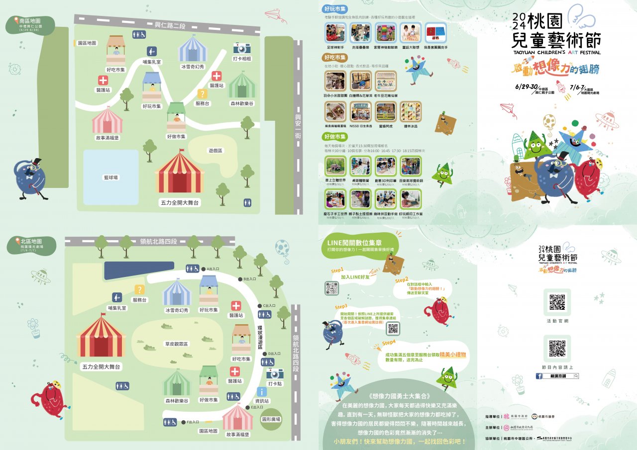 一、 本局為推廣兒童藝術啟蒙與在地藝文紮根,規劃辦理「2024 桃園兒童藝術節」活動,活動內容包含兒童市集、小型表演、故事劇場、主舞台大型演出,辦理時間及地點如下: