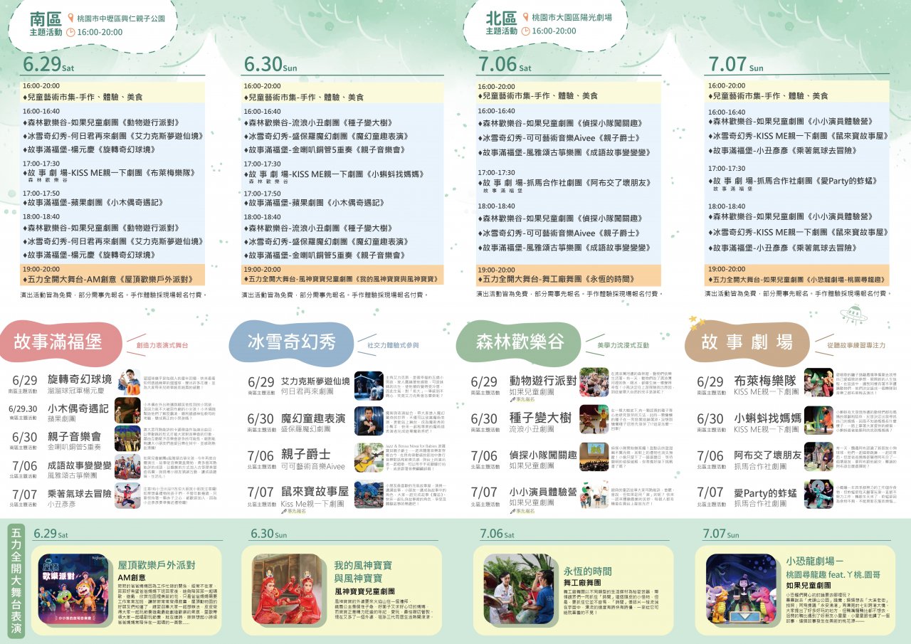 (二) 北區主題活動: 7 月 6 日(星期六)至 7 日(星期日)下午 4 時至晚間 8 時假大園區桃園陽光劇場辦理。