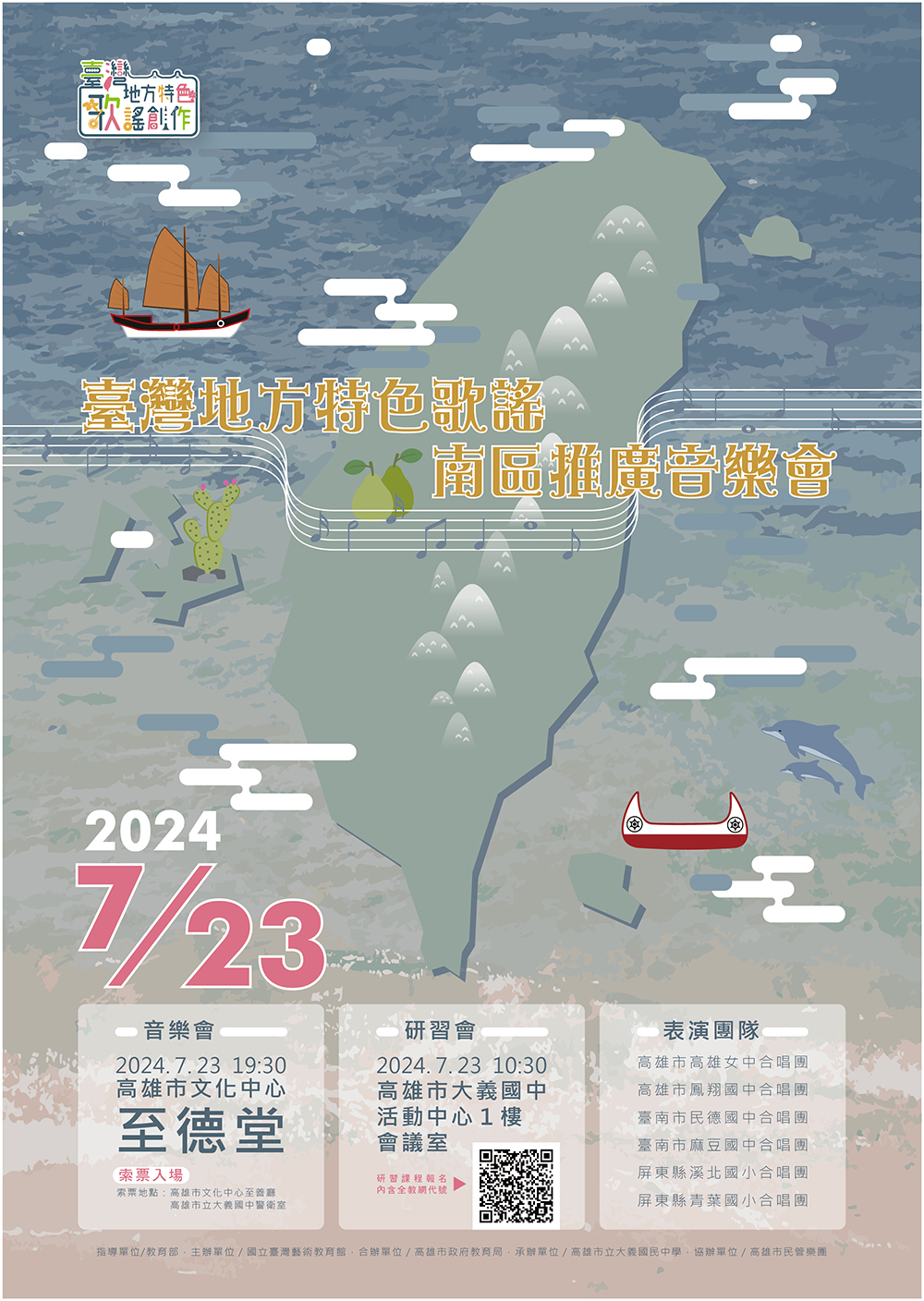 主旨: 轉知國立臺灣藝術教育館第 3 屆「臺灣地方特色歌謠創作比賽」南區推廣音樂會(含漢詩吟唱)及研習課程活動,敬請踴躍參加,請查照。