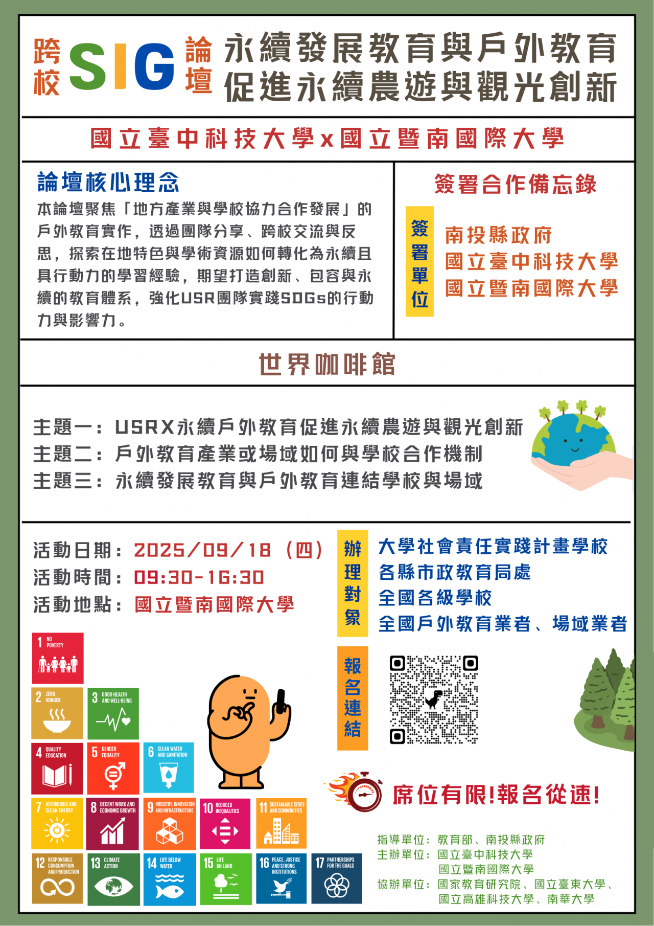 | 一、 | 依據國立臺中科技大學 114 年 8 月 25 日中科大秘永續字第 1140016687 號函辦理。 |