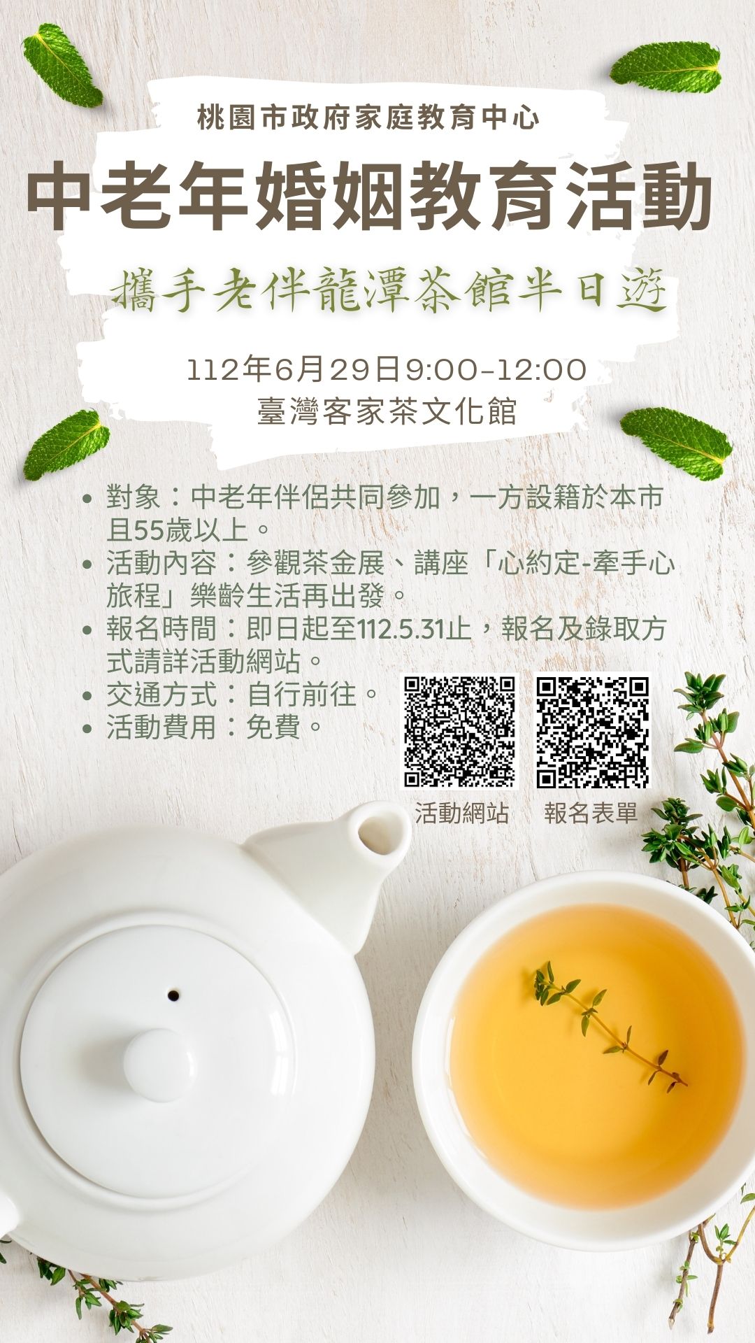 一、 | 依據桃園市政府家庭教育中心 112 年中老年婚姻教育活動實施計畫辦理。 |