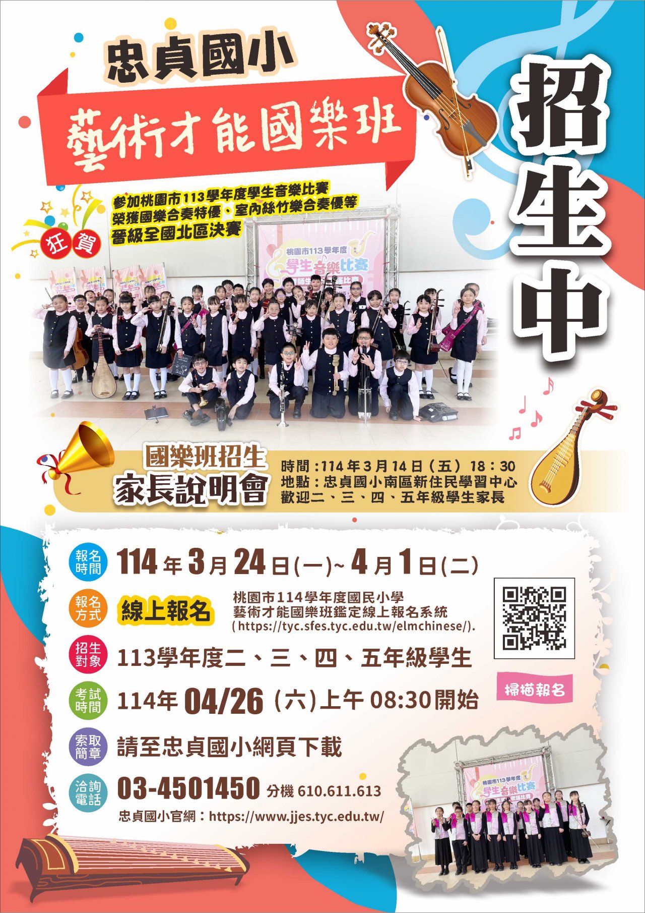 「桃園市114學年度國民小學藝術才能國樂班鑑定招生家長說明會」