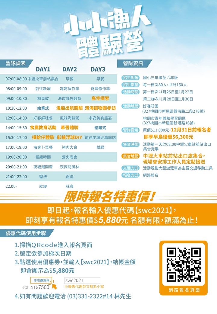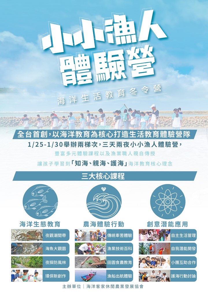 主旨:函轉本市新屋區海洋客家休閒農業發展協會辦理「小小漁 人體驗營-海洋生活教育冬令營」活動一案,請查照。