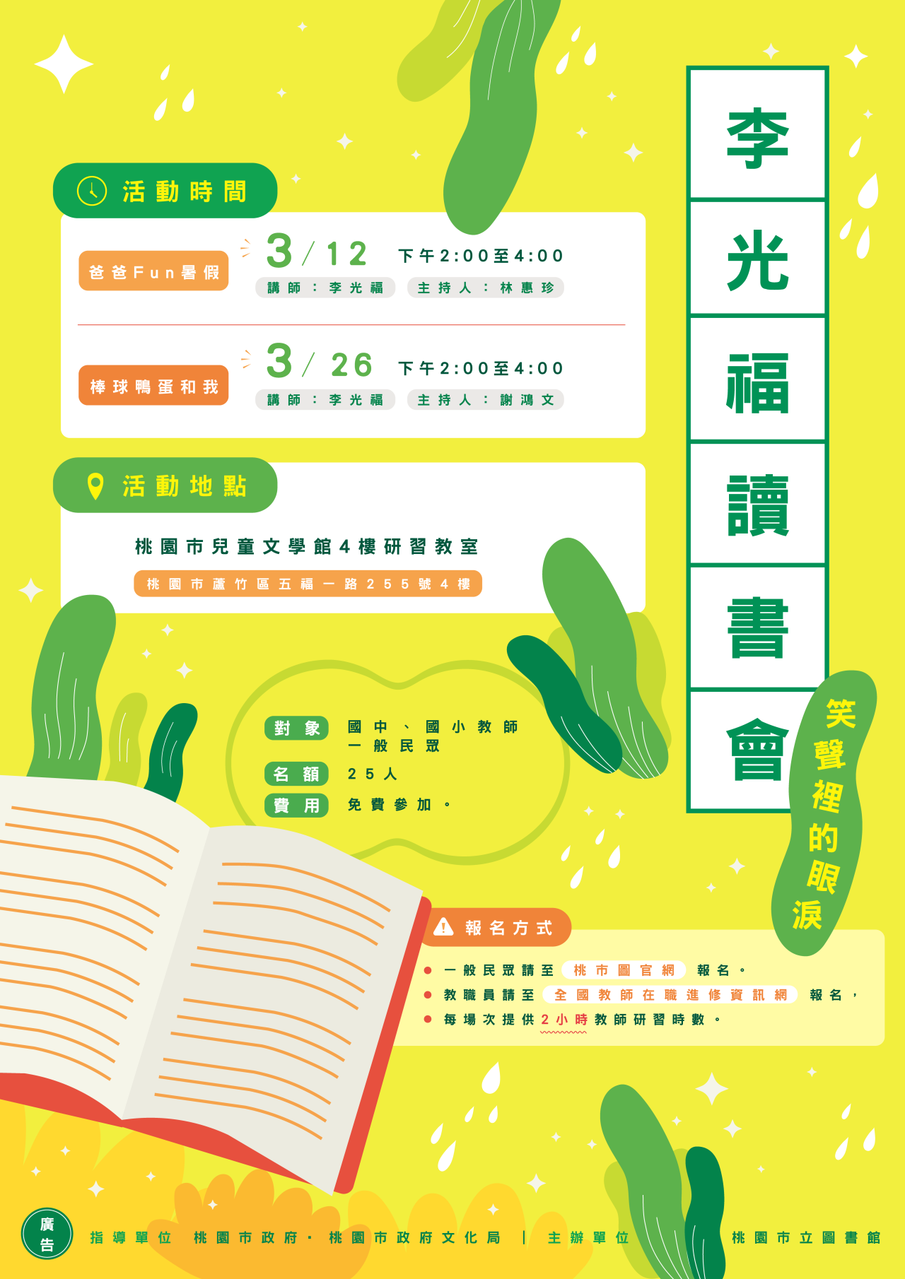 (一) | 3/12「笑聲裡的眼淚」李光福讀書會—《爸爸 Fun 暑假》 |
